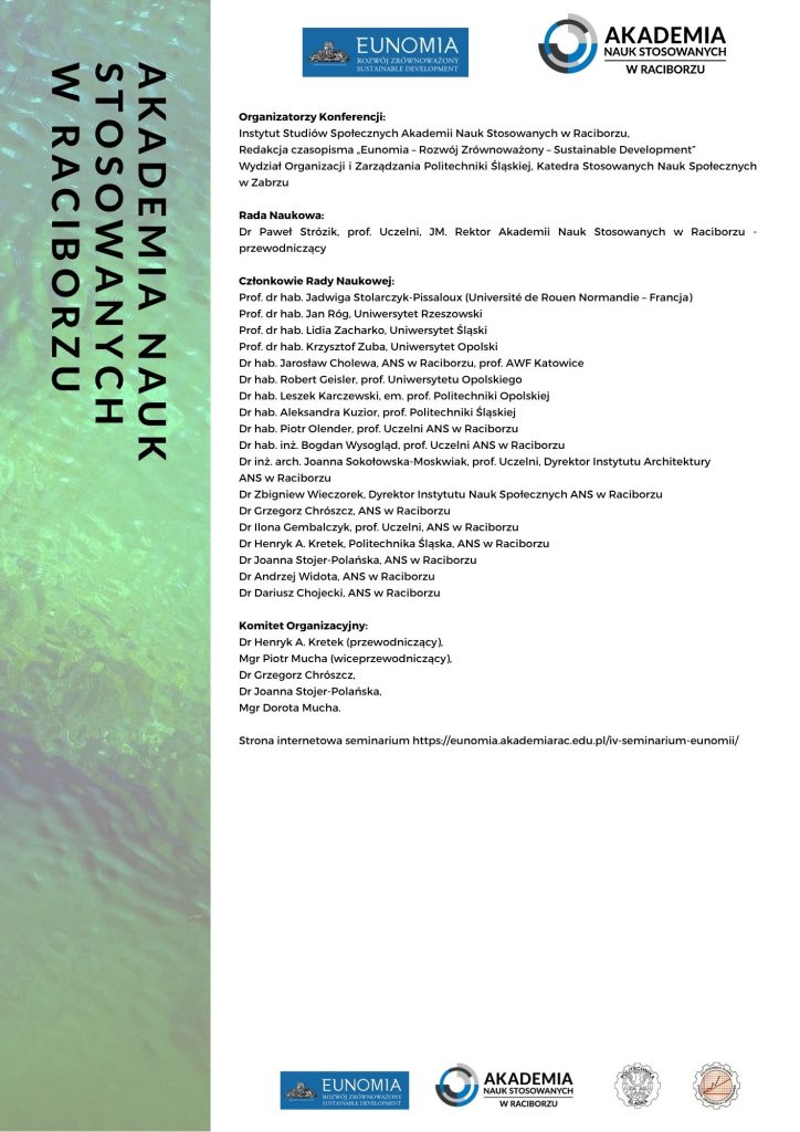 - Redakcja czasopisma „EUNOMIA – Rozwój Zrównoważony – Sustainable Development”